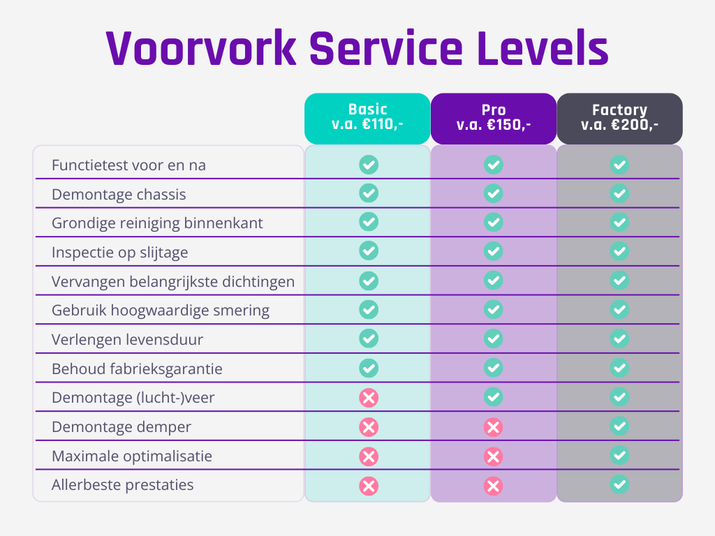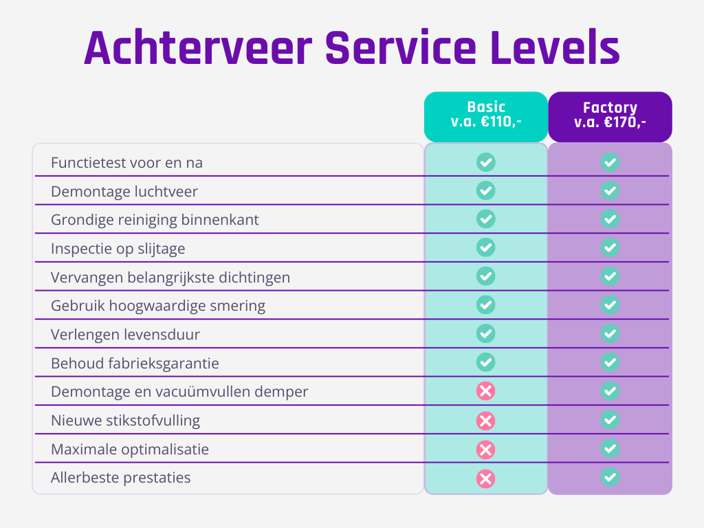Kies bij defecten aan bijvoorbeeld de luchtveer (bijv. lek) of de demper (bijv. lockout) het bijbehorende service level tijdens het boeken van je service.